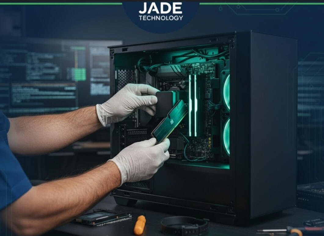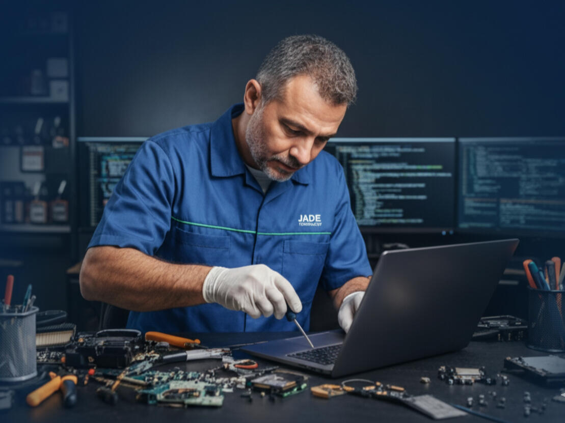 Somos Jade Tech, una empresa peruana con sede en Surco, Lima, especializada en soporte informático y soluciones digitales. Con más de 14 años de experiencia, brindamos atención a personas, negocios, colegios e instituciones, ofreciendo servicio técnico confiable, rápido y profesional.